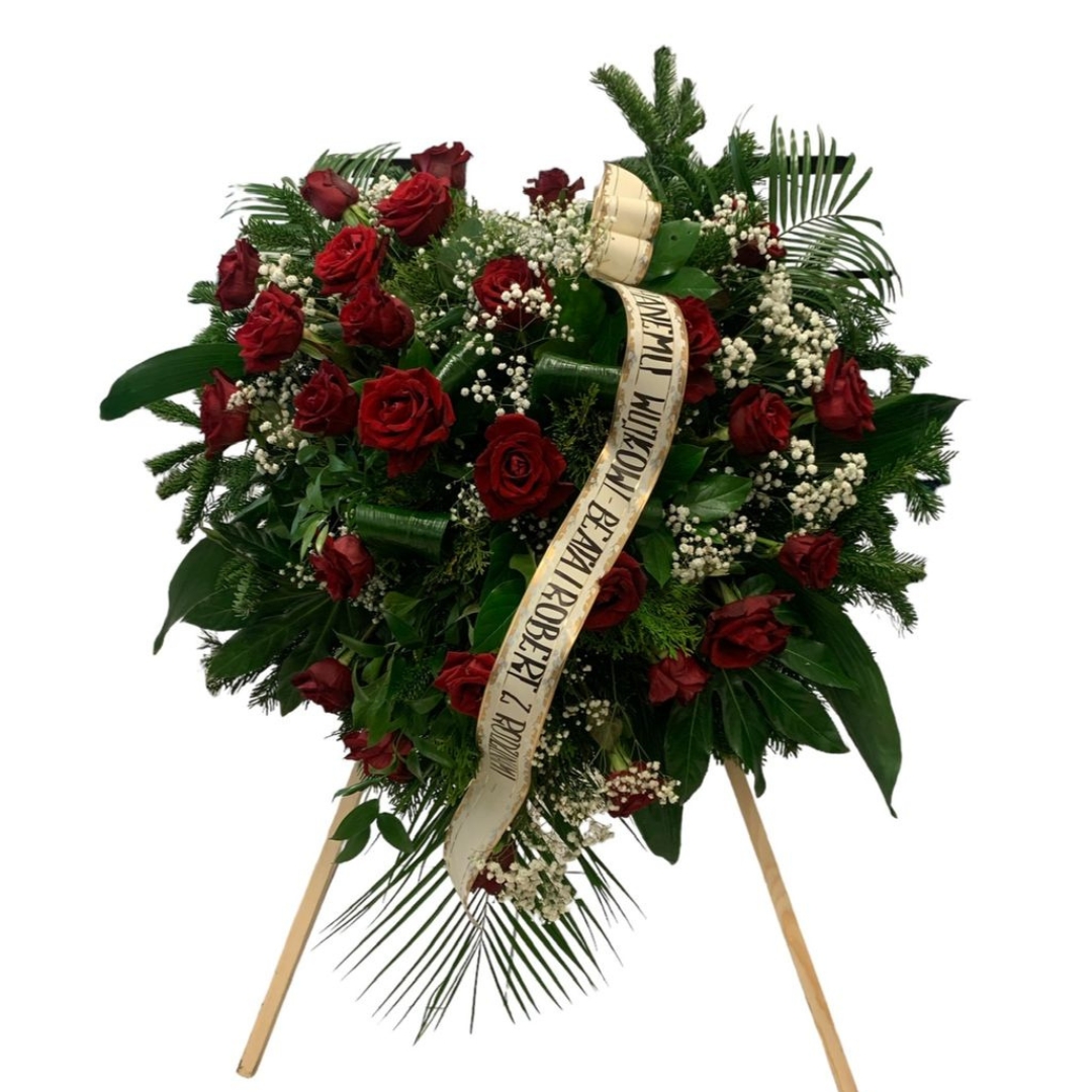 Oferujemy wieńce w różnych rozmiarach, kształtach i kolorach – z możliwością dodania personalizowanej szarfy z napisem. Każdy wieniec może być dostarczony bezpośrednio na ceremonię pogrzebową, do kościoła, kaplicy lub na cmentarz.